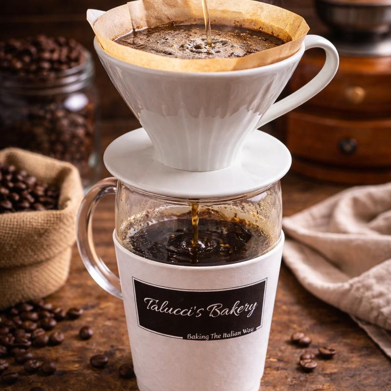 Hand-crafted pour over coffee brewed fresh to order for a smooth, rich, and balanced cup.